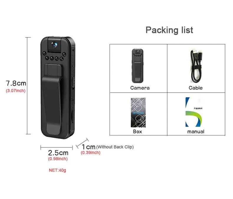 📸【Loop Recording & Large Storage Capacity】You can insert a SD card up to 128GB into this mini body camera and then record hours of video in peace. When the memory card is full, the newly recorded video will automatically overwrite the oldest one, you don’t have to worry about missing the latest situation.